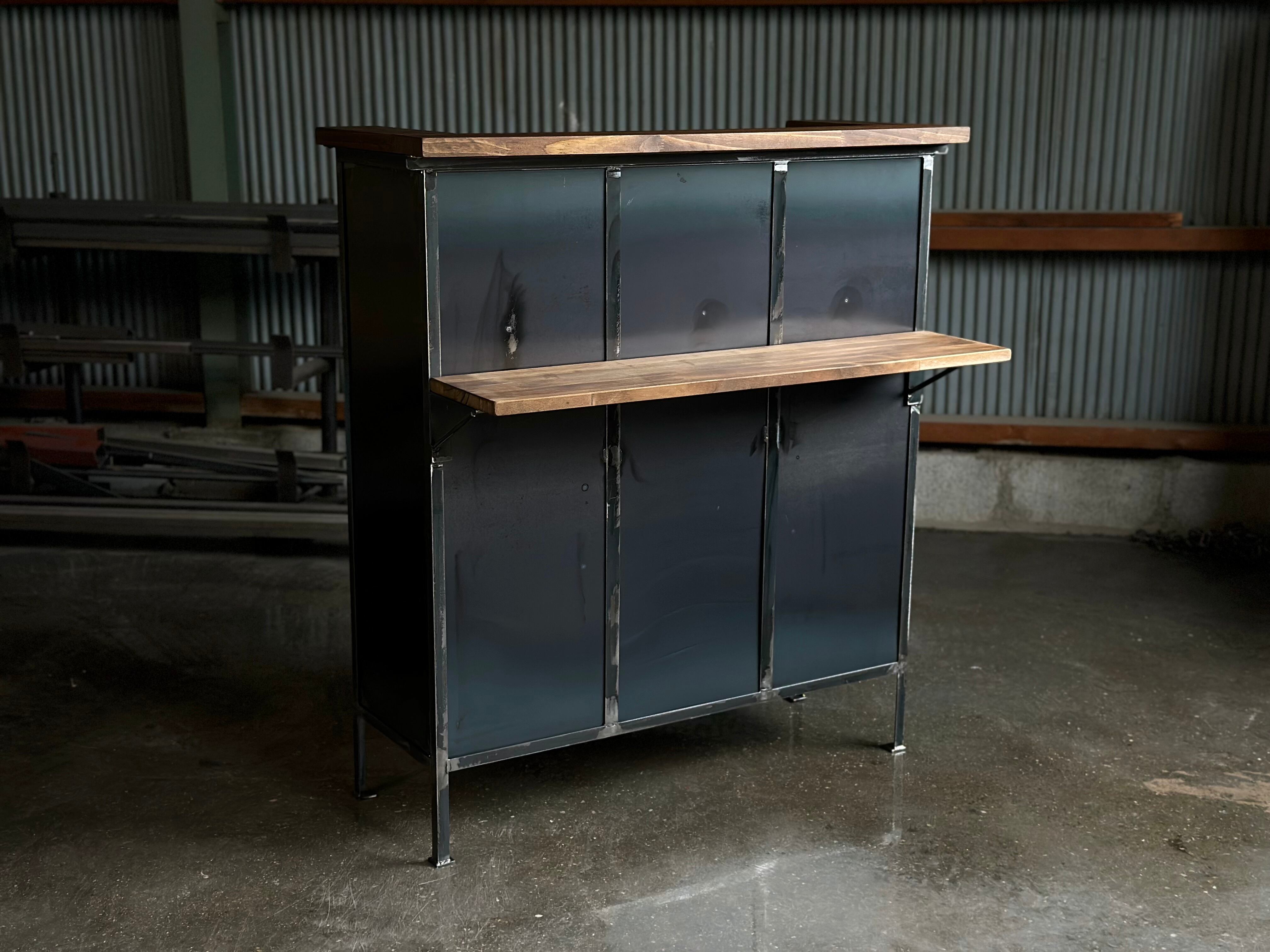 無骨でインダストリアル調にデザインされたカウンターでアンティーク感も醸し出しています。